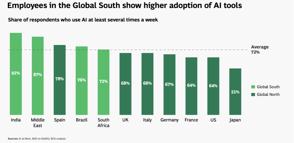 Il faut noter que cette adoption rapide de la « GenAI », l’IA générative, s’est produite principalement dans les pays asiatiques, au Brésil et en Espagne, plutôt que en France ou en Allemagne.