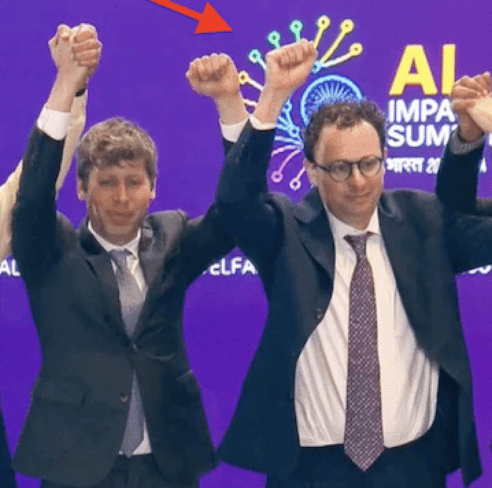Altman et Amodei, dans la photo côte à côte, à poings serrés, lors du Sommet sur l'IA 2026